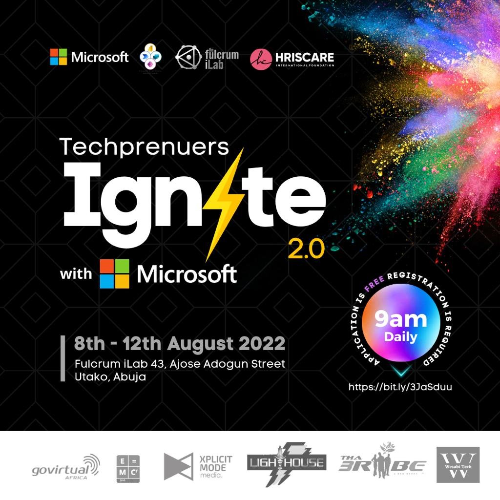 August 6, 2022 @ 8:00 am - 5:00 pm Techpreneurs Ignite (Microsoft power Bi boot camp) Venue: 43 Ajose Adeogun Street, Abuja, Federal Capital Territory, Nigeria Free
