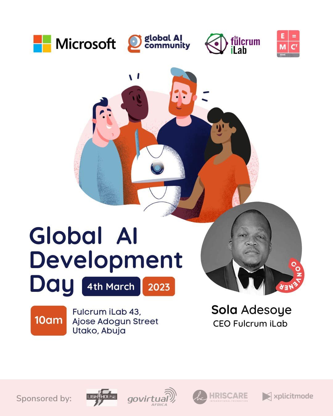 March 4, 2023 @ 10:00 am - 5:00 pm Global AI Bootcamp (Fireside chat) Venue: 43 Ajose Adeogun Street, Abuja, Federal Capital Territory, Nigeria Free